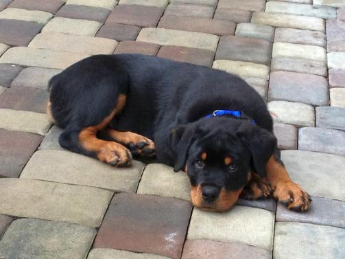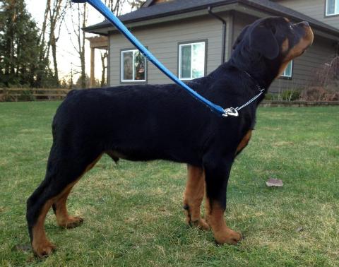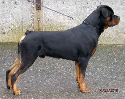 | Axl is our newest up and coming wonder boy. He is out of our Black Mask Rottweilers "F" litter. We are very excited about this little man's potential and look forward to seeing what he can do in the show ring in the future. We co-own Axel with one of our closest friends, Jessica, in Canada. |