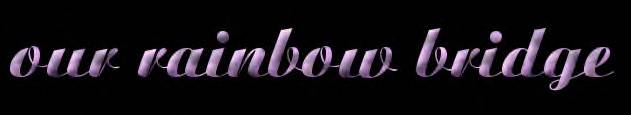 | "RAINBOW BRIDGE" Just this side of Heaven is a place called Rainbow Bridge. When an animal dies that has been especially close to someone here, that pet goes to the Rainbow Bridge. There are meadows and hills for all of our special friends so they can run and play together. There is plenty of food, water and sunshine and our friends are warm and comfortable. All the animals who had been ill and old are restored to health and vigor; those who were hurt or maimed are made whole and strong again, just as we remember them in our dreams of days and times gone by. The animals are happy and content, except for one small thing; they each miss someone very special, someone who was left behind. They all run and play together, but the day comes when one suddenly stops and looks into the distance. His bright eyes are intent; his eager body begins to quiver. Suddenly, he breaks from the group, flying over the green grass, faster and faster. You have been spotted, and when you and your special friend finally meet, you cling together in joyous reunion, never to be parted again. The happy kisses rain upon your face; your hands again caress the beloved head, and you look once more into those trusting eyes, so long gone from your life, but never absent from your heart. It is then that you cross the Rainbow Bridge together... *Author Unknown* |